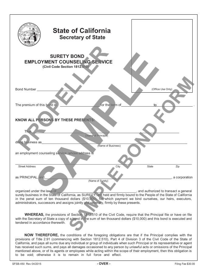 Required by the California Secretary of State for employment counseling services. Ensures compliance with Civil Code requirements and consumer protection.