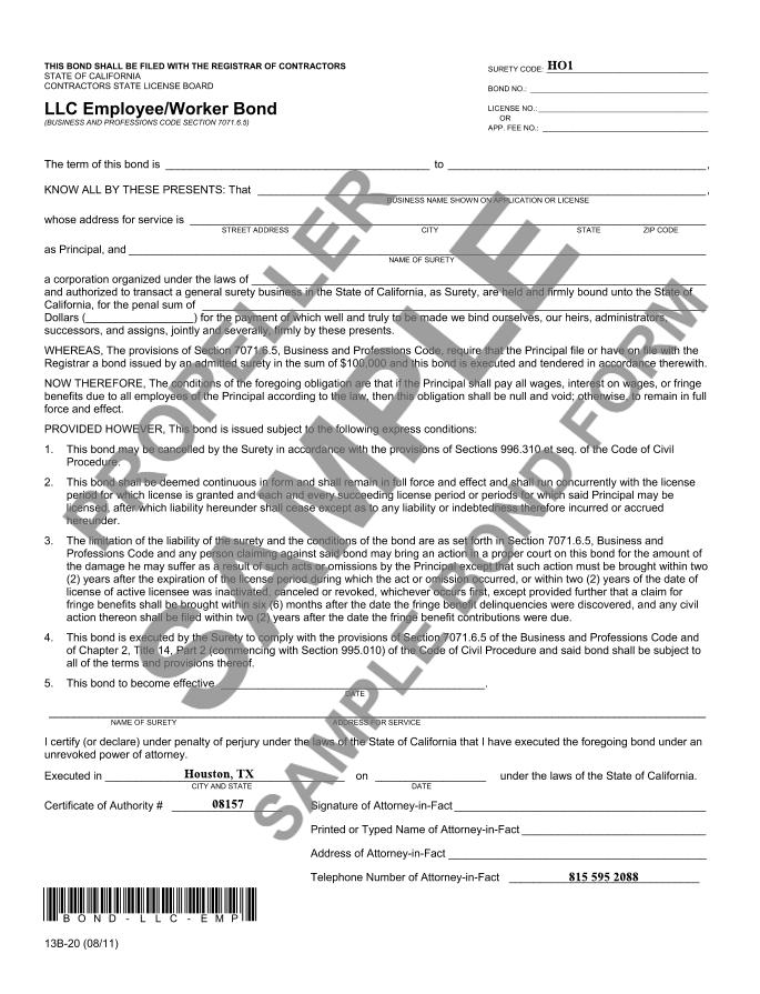 contractor bond, California, LLC employee/worker bond, CSLB, license bond