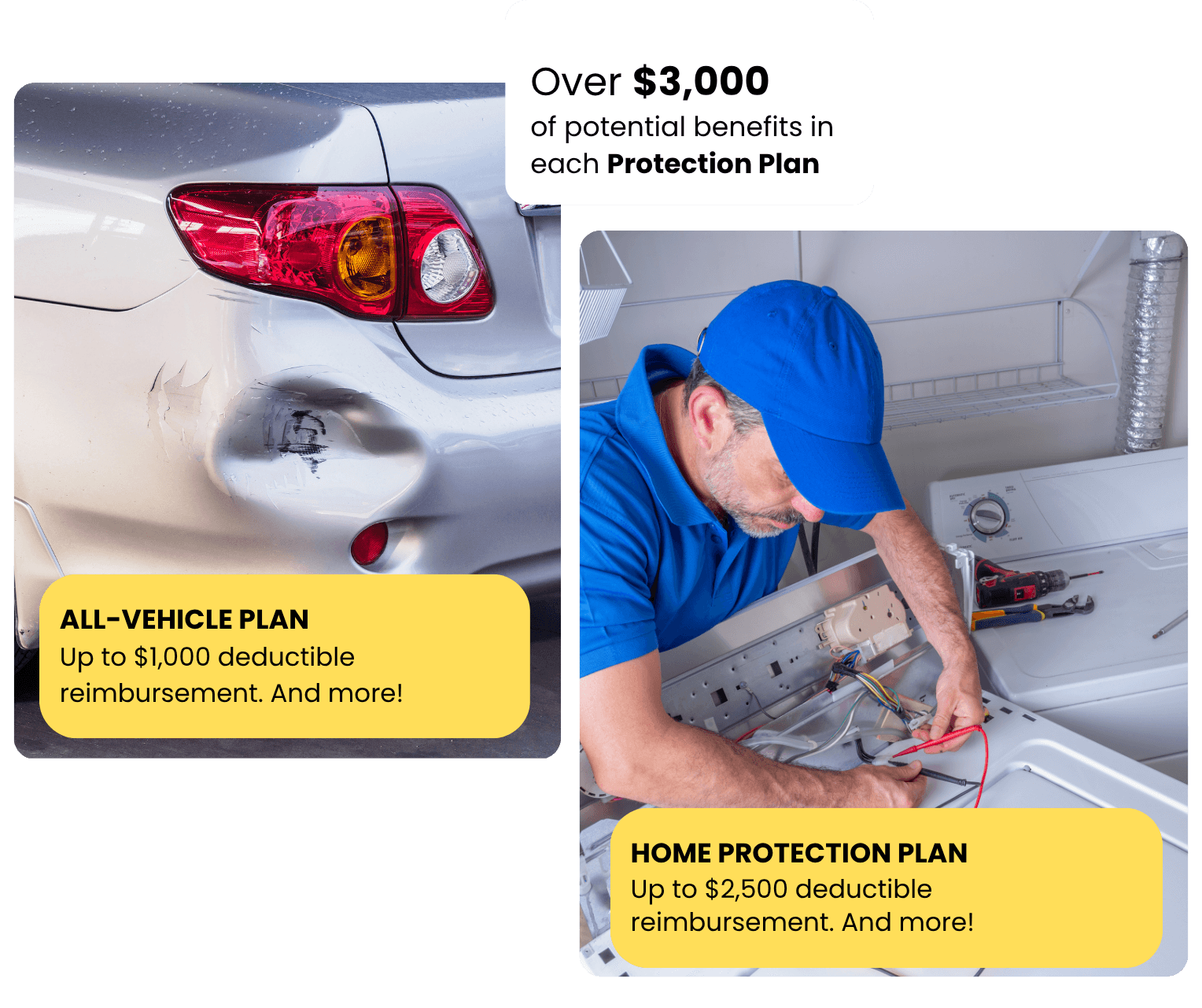 Deductible Defender® is a membership-based protection plan that reimburses your insurance deductibles and covers everyday costs like lockouts, glass breakage, appliance/electronic repairs, emergency lodging, and more. Works with any carrier and follows you, not the collateral.